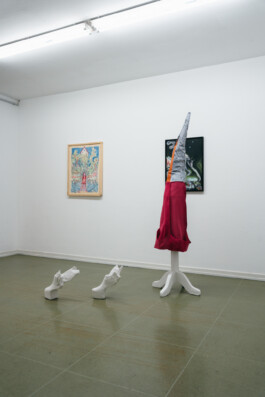 In her paintings and sculptures, Sissy Schneider combines stage-like staging with psychological depth. Her works, which often appear as still lifes of the unconscious, show influences of C. G. Jung's archetypes as well as existentialism and absurd theatre. The picture supports function as stages on which the unspoken becomes visible. Even in the two-dimensional paintings, this creates an expansive effect. For the current exhibition, Schneider has conceived a diorama that reinterprets the classic definition of this format and creates spaces that appear both familiar and strange at the same time. For the current exhibition, Schneider has conceived a diorama that reinterprets the classic definition of this format and creates spaces that seem both familiar and strange at the same time. Her works invite the viewer on a heroine's journey that at first seems easily accessible, but penetrates deep into the psychological experience and emerges especially between the works. The unconscious itself becomes the protagonist.